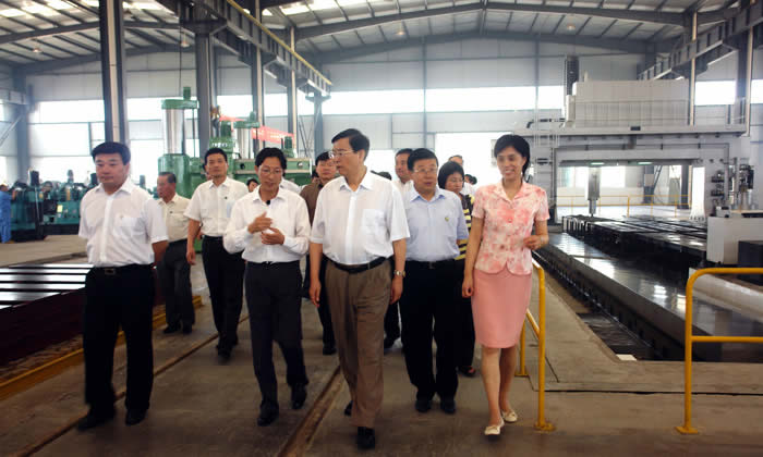 图为张德江委员长(前排左一)视察天明机械集团,����� �������Ƴ������������ �������Ƴ������������ �������Ƴ����������� �������Ƴ������与卢明立董事长(前排右一)亲切交谈。